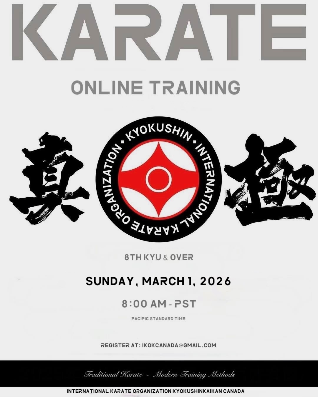OnlineOnline Training - Sunday, March 1, 2026 8:00 AM PST via Zoom Training will be held this coming Sunday morning. To register, please contact: [email protected] PS -Online training will be directed towards requirements for dan grading this year.